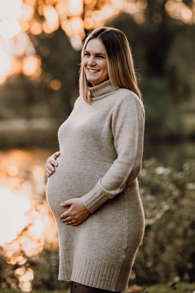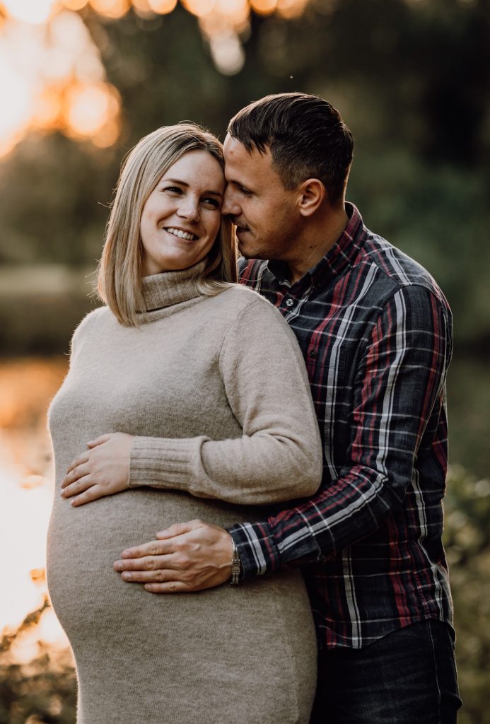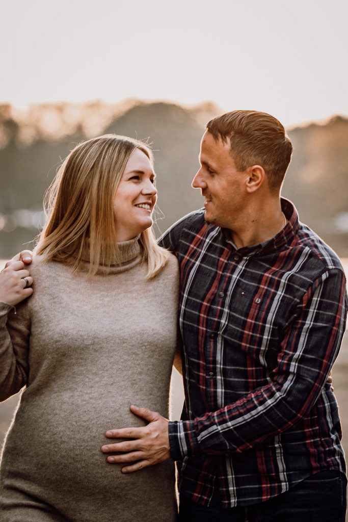 Romantisches Babybauchshooting im Sonnenuntergang